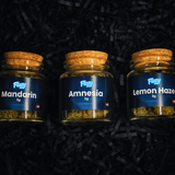 - 3 variétés : Amnesia, Lemon Haze et Mandarin, dans leurs bocaux en verre scellés par un bouchon de liÚge, pour préserver parfaitement les arÎmes.