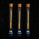 - 3 prĂ©-rolls prĂȘts Ă dĂ©guster, chacun dans son Ă©tui en verre avec bouchons de liĂšge assorti.